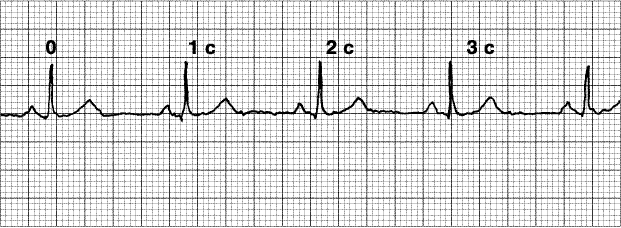 Нарастающее удлинение интервала PQ до выпадения комплекса QRS..