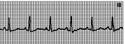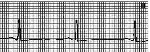 Правильный ритм. (RR = RR), ЧСС < 60 в1мин. Синусовые зубцы P. Интервал PQ > 0,12”.