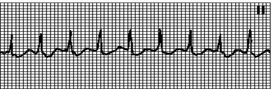 правильный ритм (RR=RR). ЧСС 100—200в1 мин. Не синусовые зубцы P. Интервал PQ обычно удлинен.