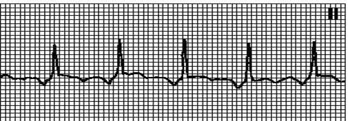 Правильный (RR=RR) или (RR?RR) неправильный ритм. ЧСС < 100 в1мин, Синусовые и не синусовые зубцы P. Интервал PQ варьирует, может быть < 0,12 ”.