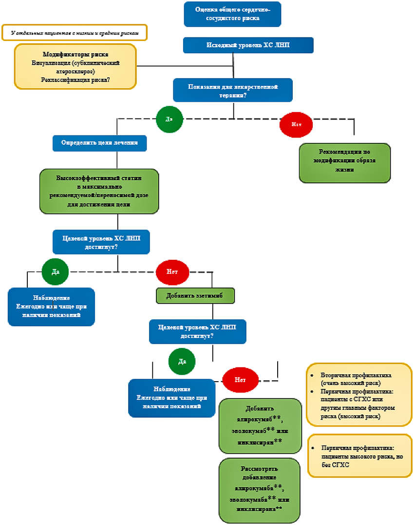 ХС ЛНП – холестерин липопротеидов низкой плотности; ХС ЛОНП – холестерин липопротеидов очень низкой плотности; ХС ЛПП – холестерин липопротеидов промежуточной плотности ХС ЛВП – холестерин липопротеидов высокой плотности; ИБС – ишемическая болезнь сердца.