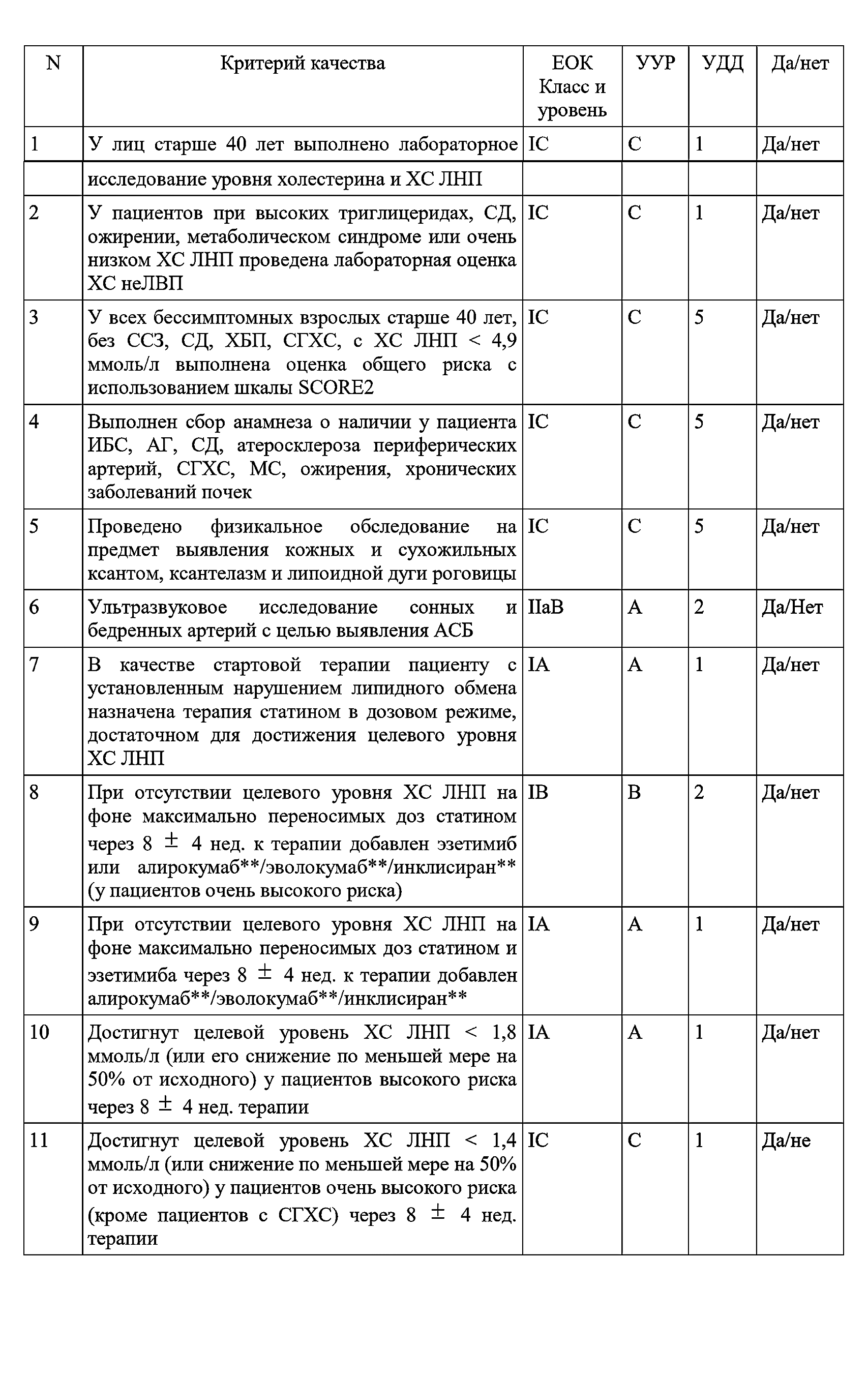 изменения гиполипидемической терапии, после достижения целевого уровня липидов.