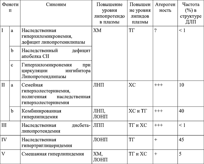 Наиболее атерогенными ДЛП являются изолированная гиперхолестеринемия (ГХС) (фенотип IIa), представленная семейной и полигенной ГХС, комбинированная гиперлипидемия (различные фенотипы гиперлипидемии в одной семье).