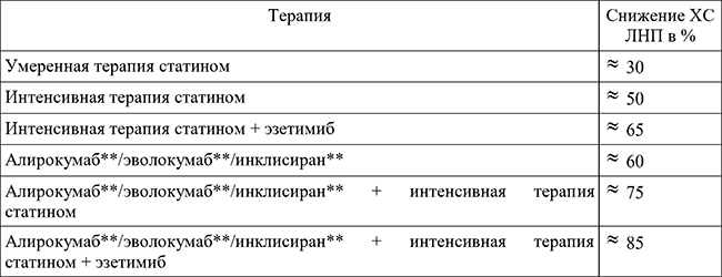 <*> И снижение ХС ЛНП > 50% от исходного уровня.