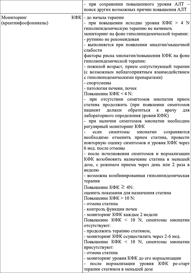уровня липидов натощак, АЛТ, АСТ) спустя 4-12 недель после начала приема статинов или